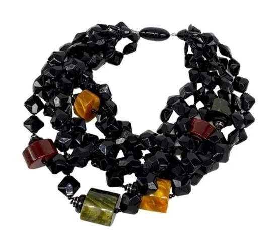 Amazing multilayered black beaded necklace. Excellent condition. Not sure of material, might be plas... Show more