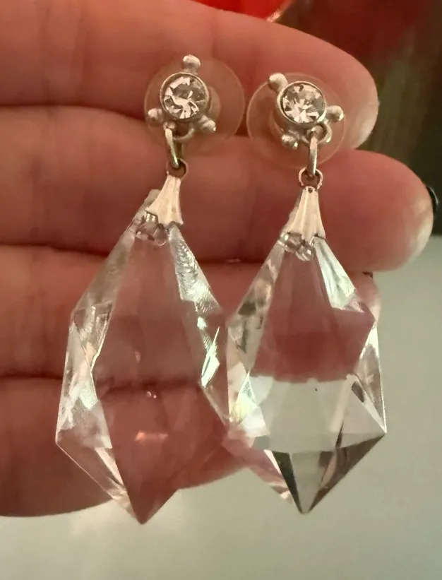 Faux Crystal Glass Dangle Drop Earrings Silver Tone Rhinestone Post Estate Sale - $10 - From T
