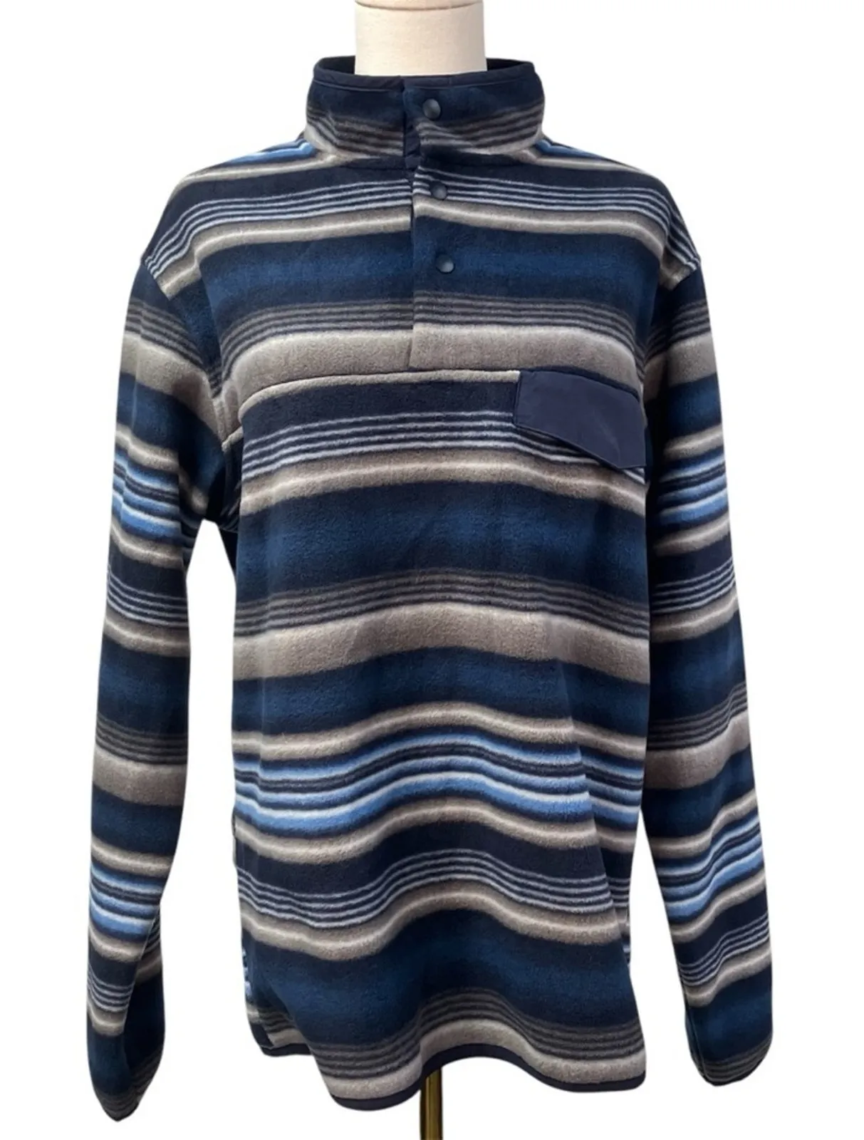 Southern‎ Grit Tundra Fleece Pullover Snap Striped Blue Grey Southwestern Womens - $35 New With Tags - From Tracie