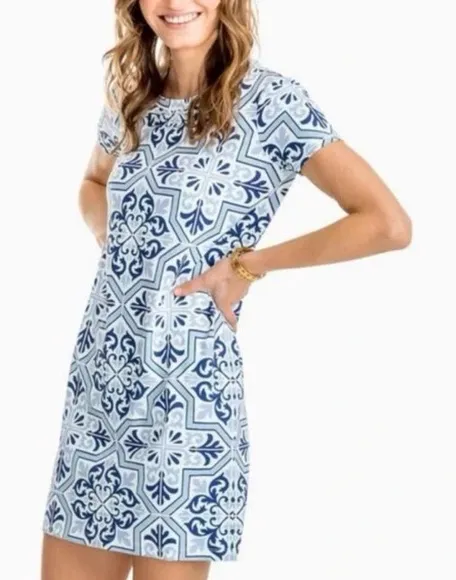 Southern Tide Amelia Tile Print Dress Blue Herron Costal Nylon Size XS. T shirt dress. Great conditi... Show more
