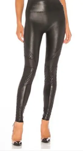 Stylish black faux leather leggings with quilted detailing. Perfect for a chic look. Rise 11.5” In... Show more
