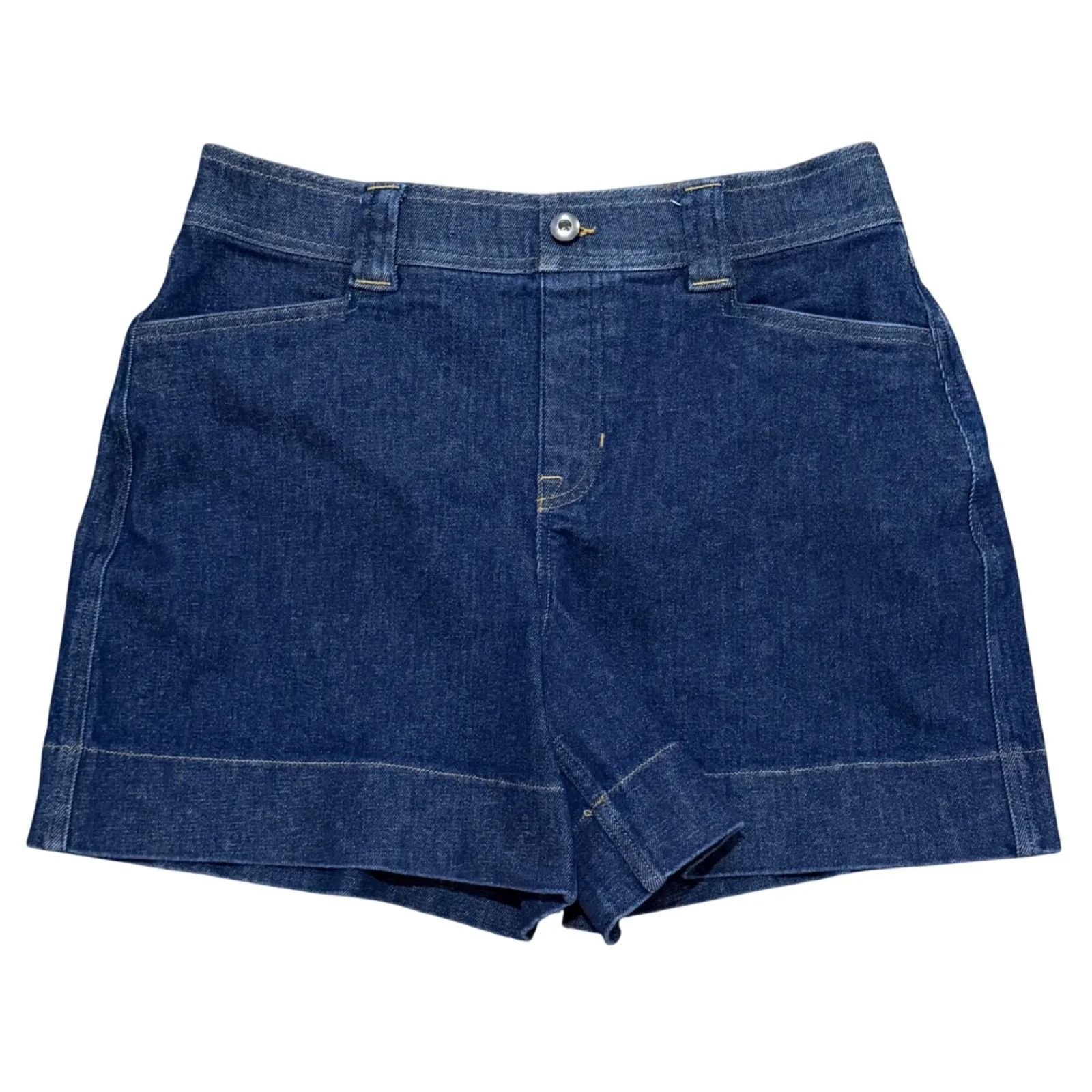Fabric 87% cotton, 11% polyester, 2% spandex Measurements Rise 12" Inseam 5.5" Waist measured flat... Show more