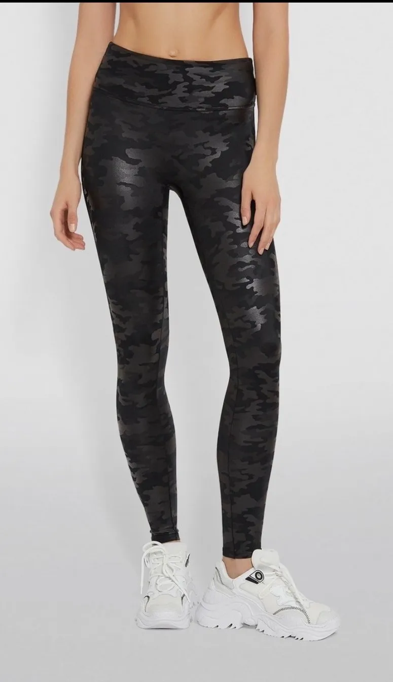 Stand out in these sleek SPANX faux leather camo leggings featuring a tonal black and charcoal camou... Show more