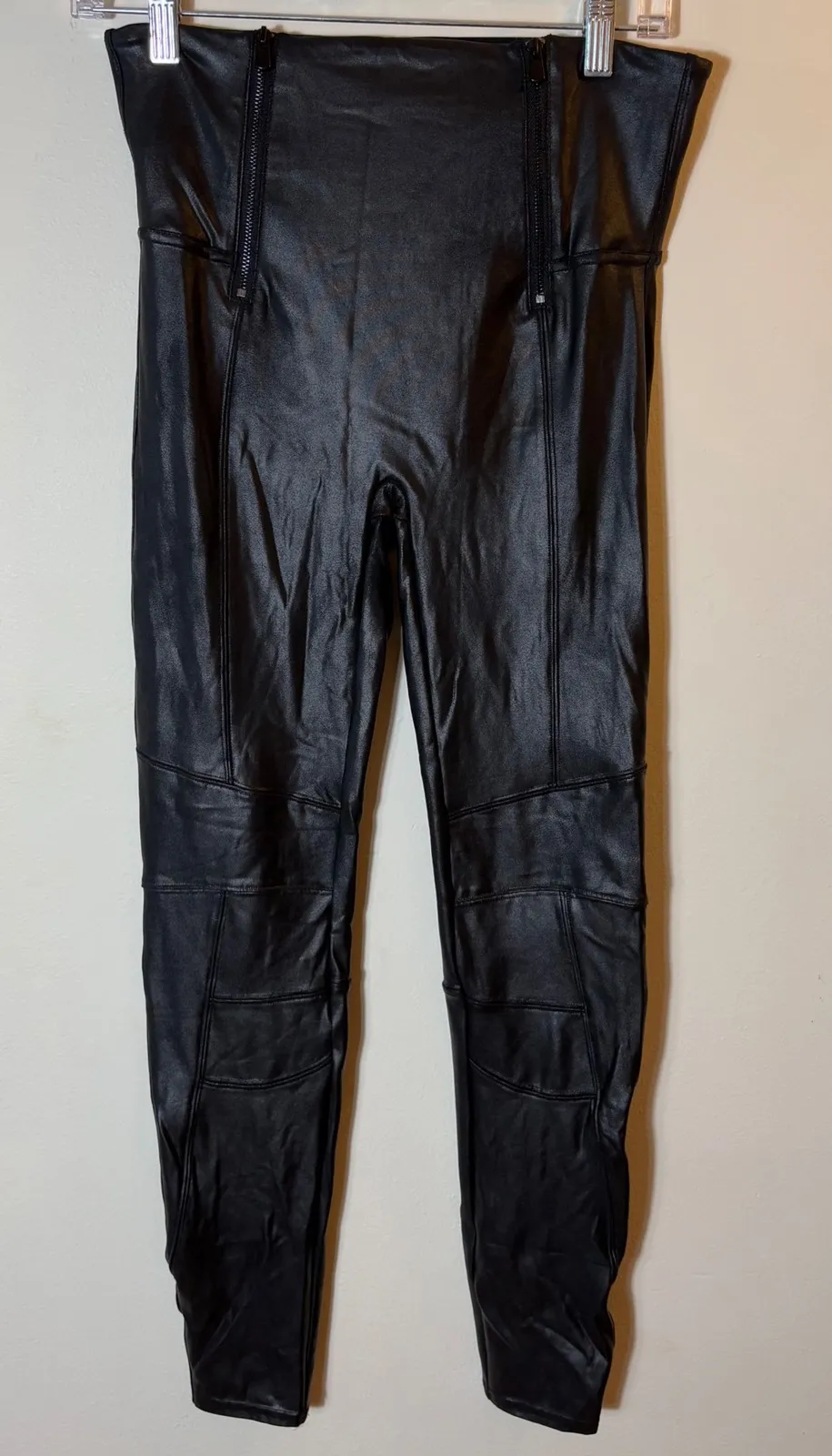 Keywords: Spanx leggings, faux leather leggings, moto leggings, high waisted leggings, black leggings, zipper detail leggings, designer leggings, stylish leggings, size large leggings, fashion leggings, women's leggings, Spanx faux leather moto, Spanx large