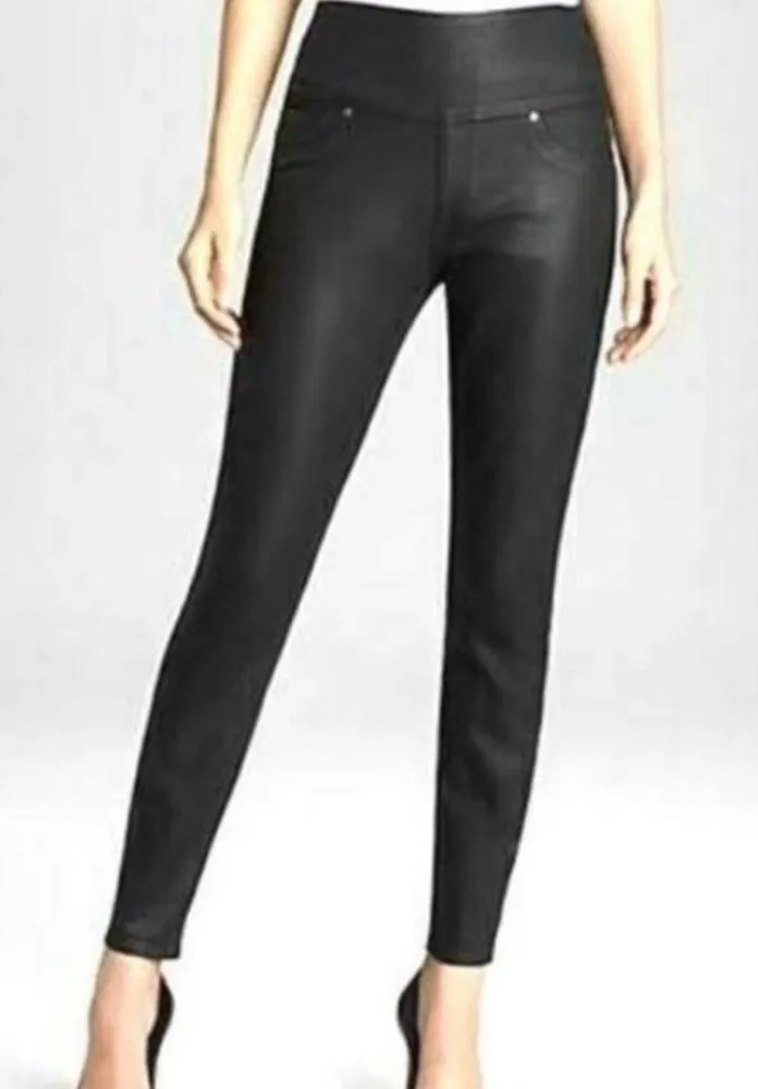 Spanx jeggings women Alexia 2310 Ready To Wow wax coated black Denim Jeans SZ M Great condition... Show more