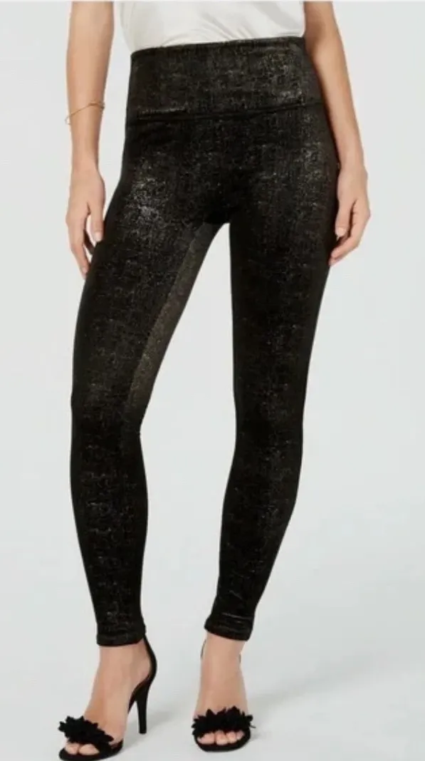 SPANX Shape high waist velvet leggings in black with a textured metallic gold overlay. These legging... Show more