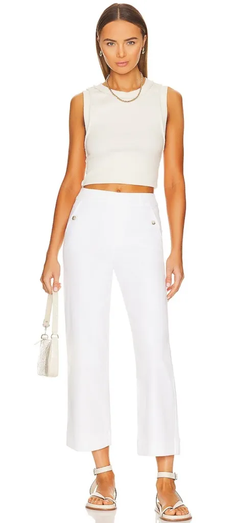 Spanx Stretch Twill Cropped Wide Leg Pants Ecru Inseam 24”