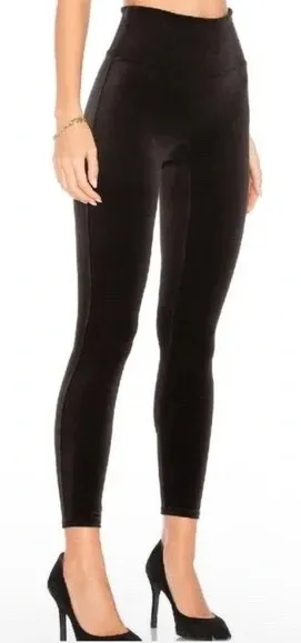 SPANX black velvet high-waisted leggings. These luxurious leggings offer a comfortable and stylish o... Show more