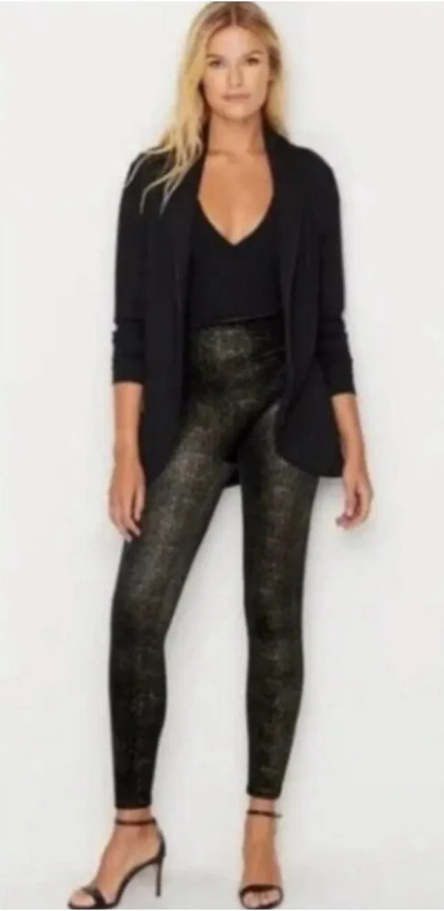 SPANX faux leather leggings in black with a striking gold metallic print. These high-waisted legging... Show more