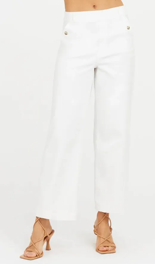 Elevate your wardrobe with these stylish Spanx White Wide Leg Ankle Cropped Pants. These pants offer... Show more