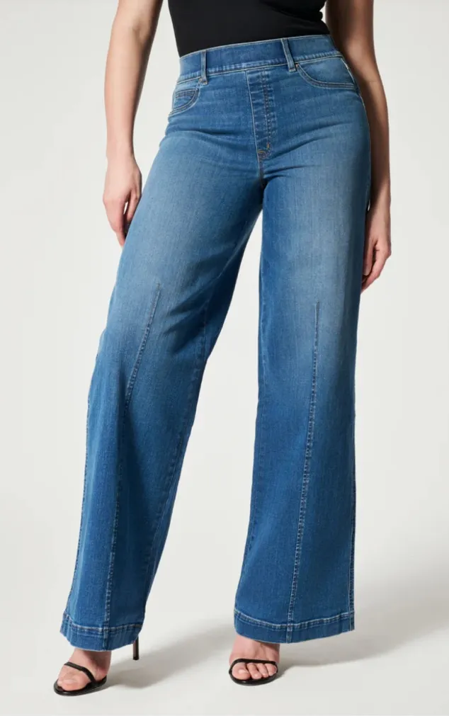 Title: Spanx Wide Leg Jeans XS Dark Wash Front Seam High Rise Stretch Denim Item specifics: • Bran... Show more