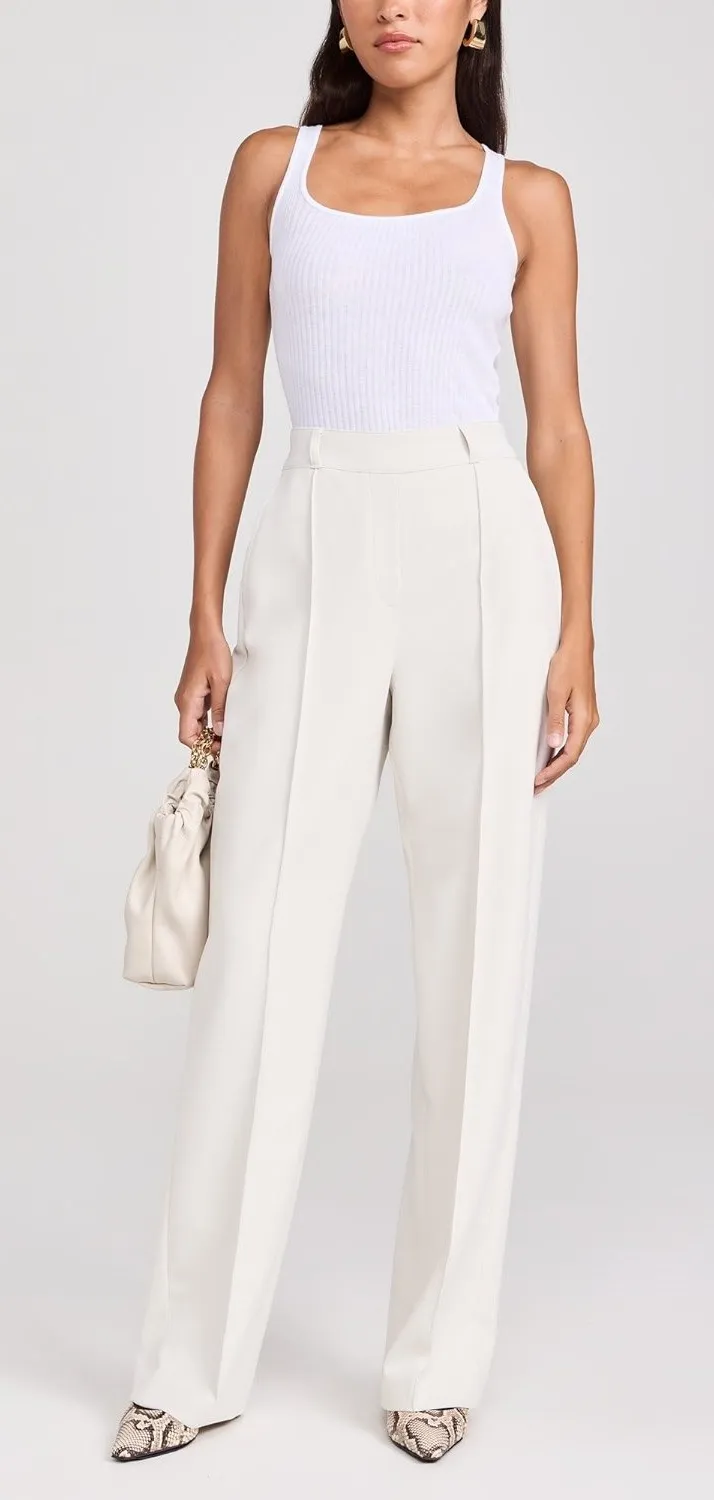 SPANX wide leg tailored pants in white. Crafted with a comfortable elastic waistband and practical s... Show more