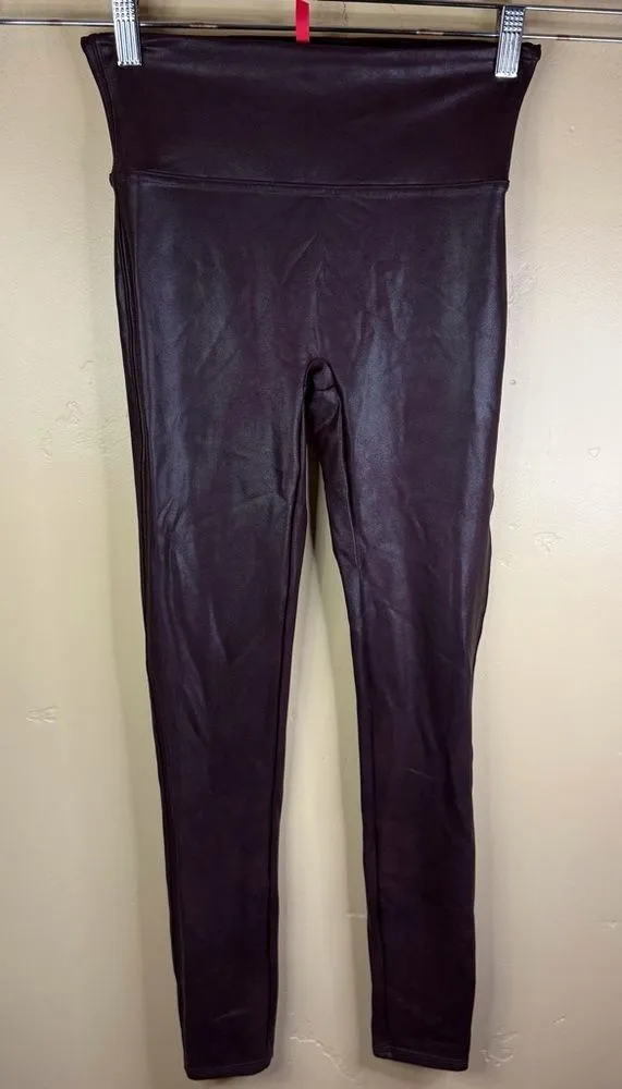 Spanx Womens Size Medium Burgundy Faux Leather Leggings Streetwear Activewear