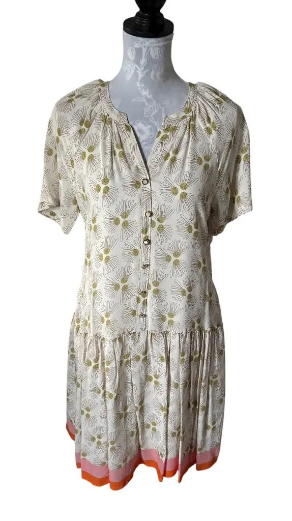 Spartina 449 Floral Daisy Print Dress Short Sleeve With Pockets LARGE Boho Orange - $60 - From Cathy