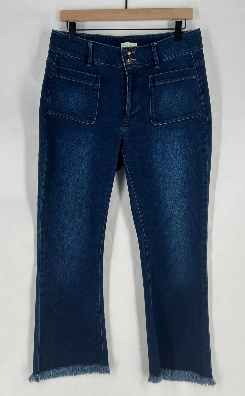 Spartina 449 Juliette Kick Flare Jeans Womens 8 Blue Denim Frayed Hem Patch Pockets Description Spartina 449 Juliette Kick Flare Jeans Womens 8 Blue Denim Frayed Hem Patch Pockets Product Detail • Brand: Spartina 449 • Department: Women's • Color: Blue • Type: Jeans See photos for condition — I make sure to capture all details and imperfections.