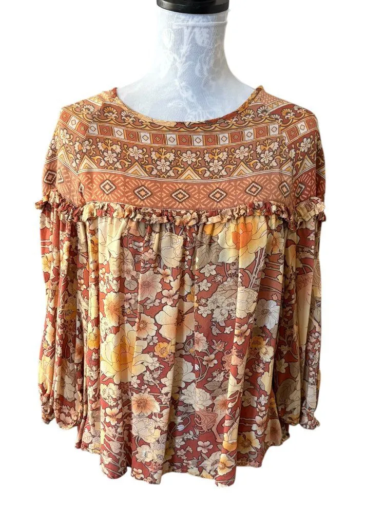 Spell and The Gypsy Collective Amethyst Blouse Shirt Long Sleeve Amber Small Brown - $50 - From Cathy