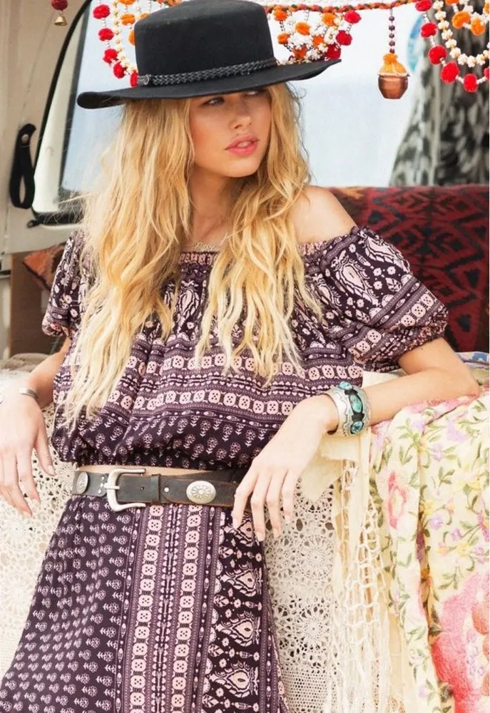 Spell & the Gypsy Collective Gypsiana Top and skirt The skirt has two slits and a side zipper. The t... Show more