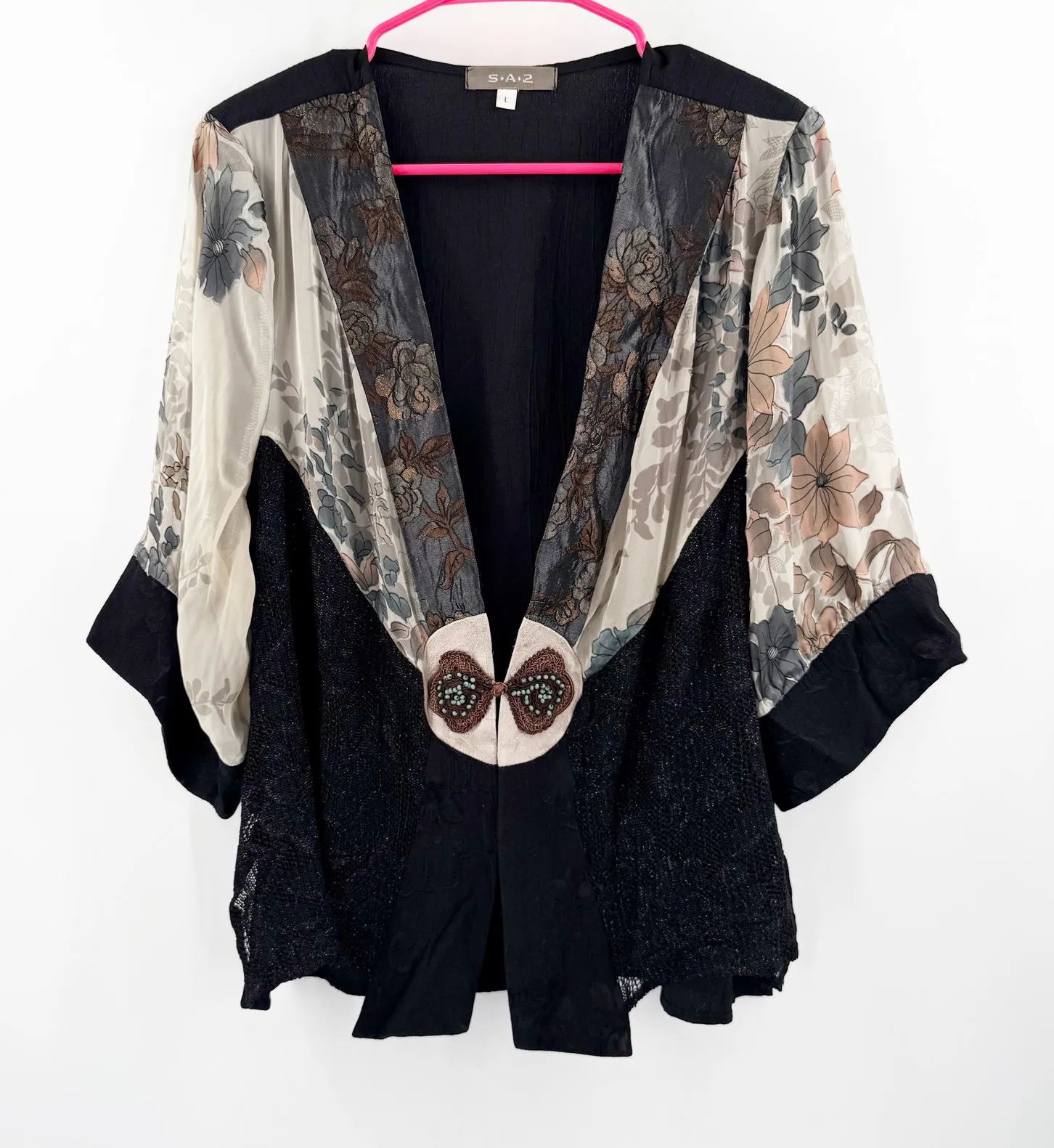 Spencer Alexis SA2 Top Size Large Kimono Cardigan Silk Blend Lagenlook Art to Wear Boho Artsy Whimsi... Show more