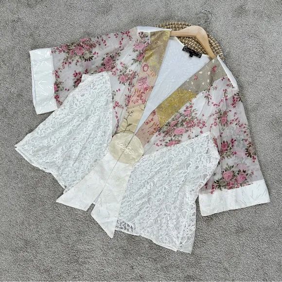 Spencer Alexis Vintage Silk Blend Kimono Top Floral Lace Embroidered Fairy 3X Pink - $35 - From Elmee