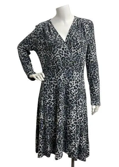 SPENSE Medium Faux Wrap Heather Gray Animal Print Dress Casual Dinner Romantic - $25 - From Jenns