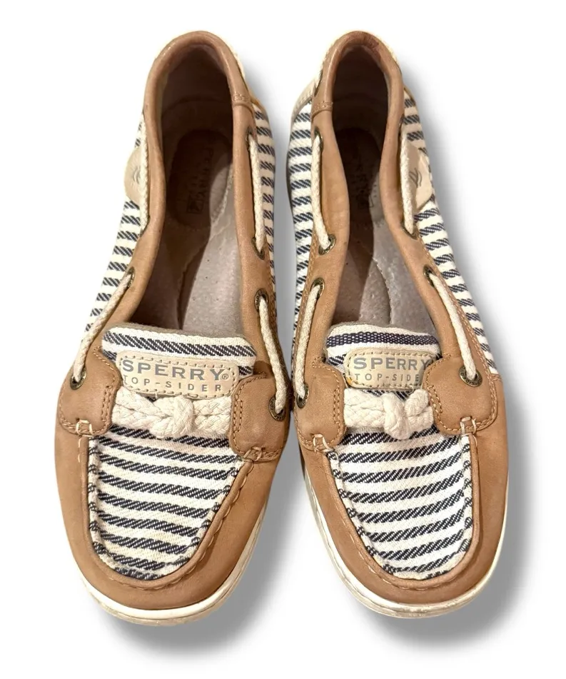 Sperry Angelfish Top Sider Cream & Blue Striped Leather Fabric Boat Shoes