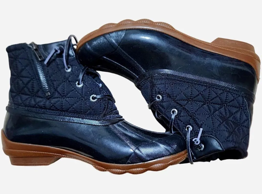 Sperry black waterproof duck boot, fleece lined. Adjustable leather laces (non-adjustable) EUC - Ver... Show more