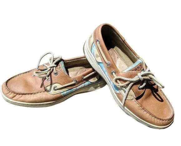 Step up your style game with these Sperry boat shoes in a unique blue plaid design. Crafted with a b... Show more