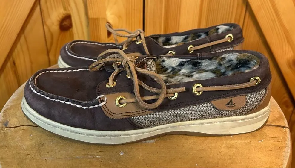 Sperry Top Sider Boat Deck Shoes Women’s 6M Animal Print Faux Fur Lined