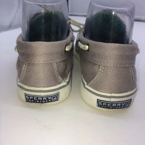EUC Bahama Sperry Top Siders for women with a medium gray herringbone weave cotton canvas with turqu... Show more