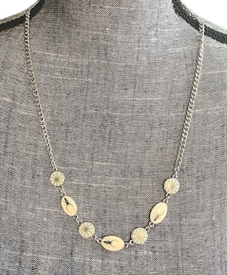 Spider Pendant Linked Charm Silver Tone Chain Necklace Necklace is approx 24” long + a 2” extender... Show more