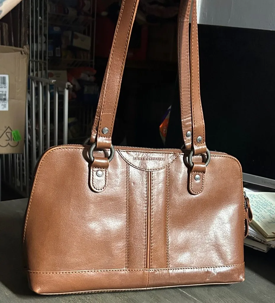 Style: East-West Shoulder Bag / Satchel Material: Genuine Leather (often described as Bronco or Apache leather) Color: Brown / Cognac / Tan Hardware: Silver-tone Origin: Often made in India These bags are known for their durability and classic style, developing a unique patina over time with use. 14 wide 8 tall