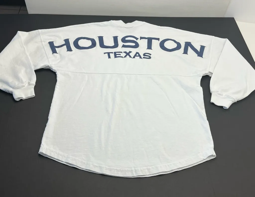 Spirit Jersey Houston Texas White Womens Size Small Long Sleeve Shirt Spell-out Preowned in good condition Please see all pictures for the condition and measurements of this shirt.