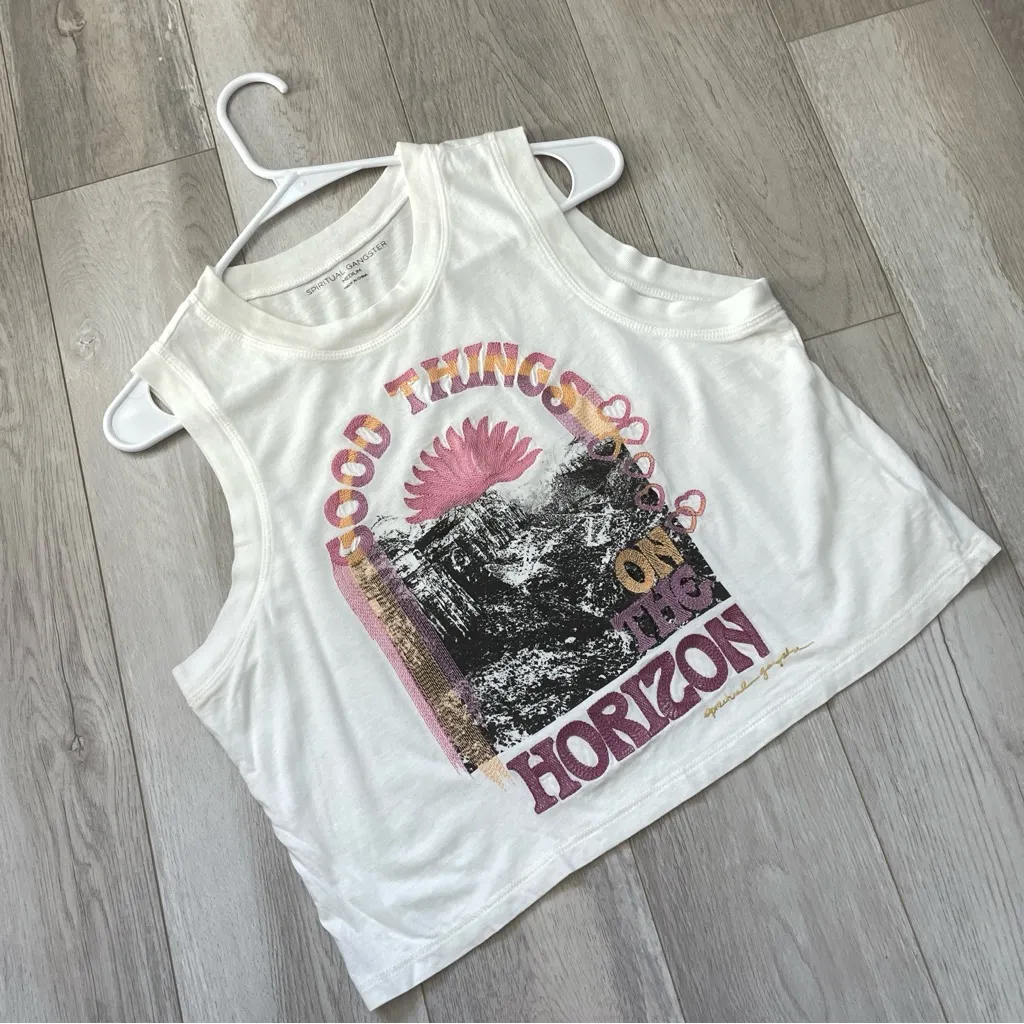Spiritual Gangster Bamboo Embroidered Tank Top in the color White. Crew neckline, sleeveless, racerb... Show more