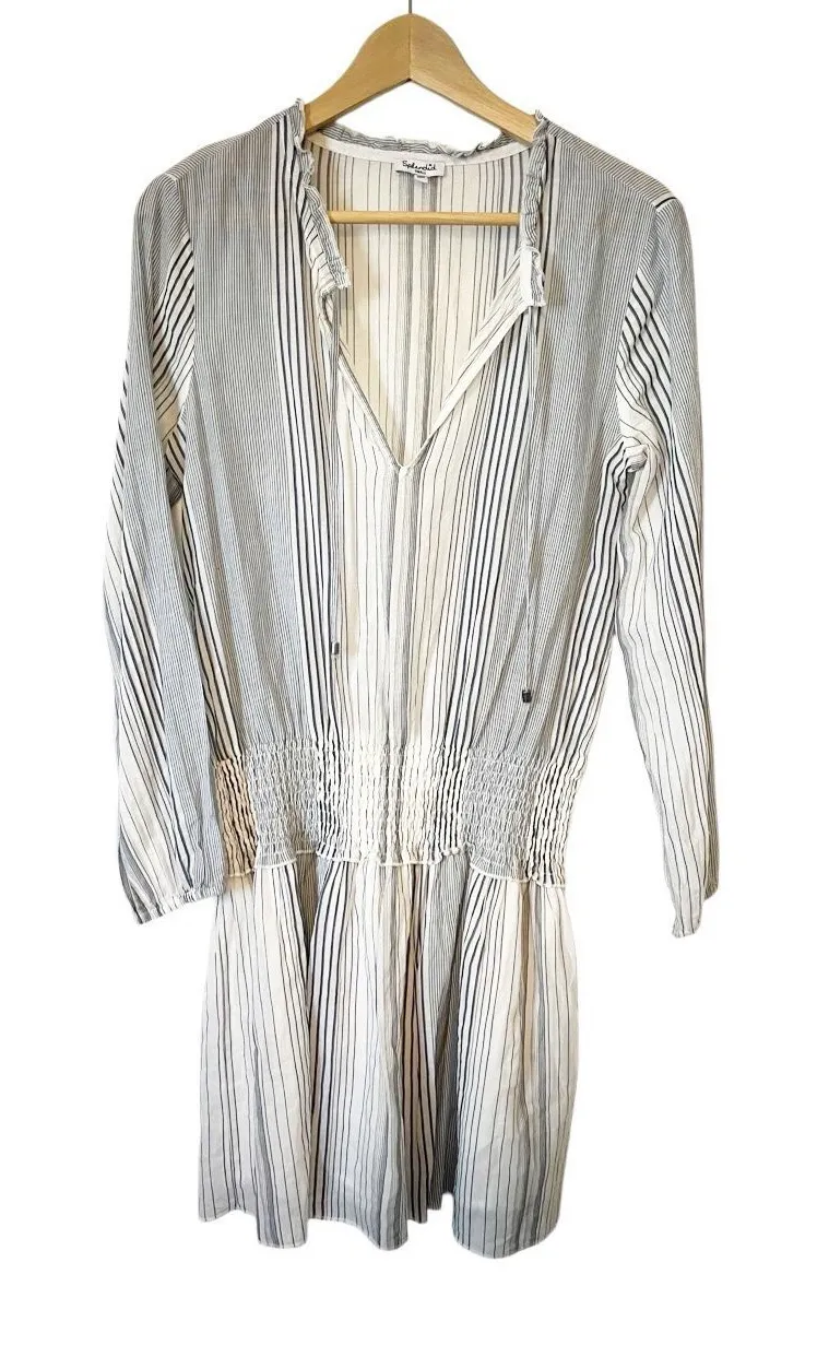 Splendid Blue White Striped‎ Cotton Lined Long Sleeve Smocked Waist Dress Small - $25 - From KennyLou