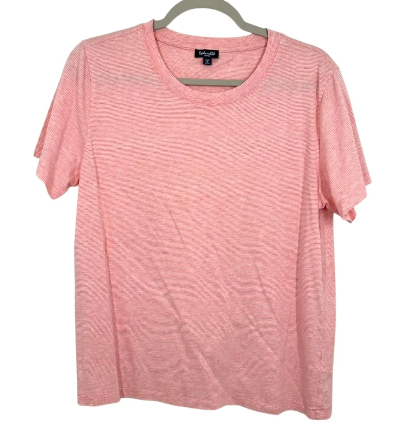 Splendid Women's Striped Cotton Modal T-Shirt Tee Top Size Large Coral Pink Pre-Owned in Great Condi... Show more