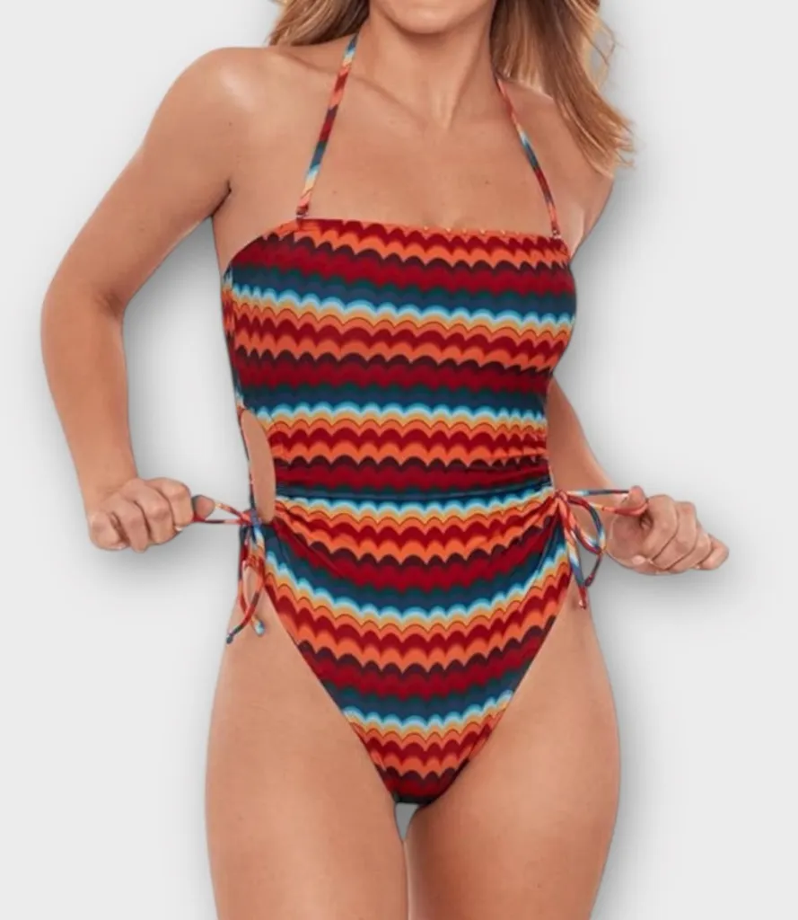 Sports Illustrated Strapless One Piece Side Cutout Groovy Stripe Swimsuit Size L Red Size L - $28 New With Tags - From Jessica