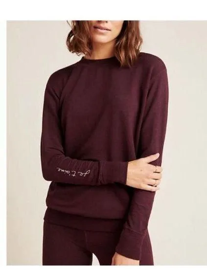 Sundry burgundy Je’Taime embroidered sweater Embroidered heart and words So soft Worn once Long sleeved Crew neck Bought at Anthropologie Relaxed fit Size 1- fits like a S/M Very open to reasonable offers Fast shipping Please see photos. They are part of the description Happy to answer any questions Thanks for stopping by!