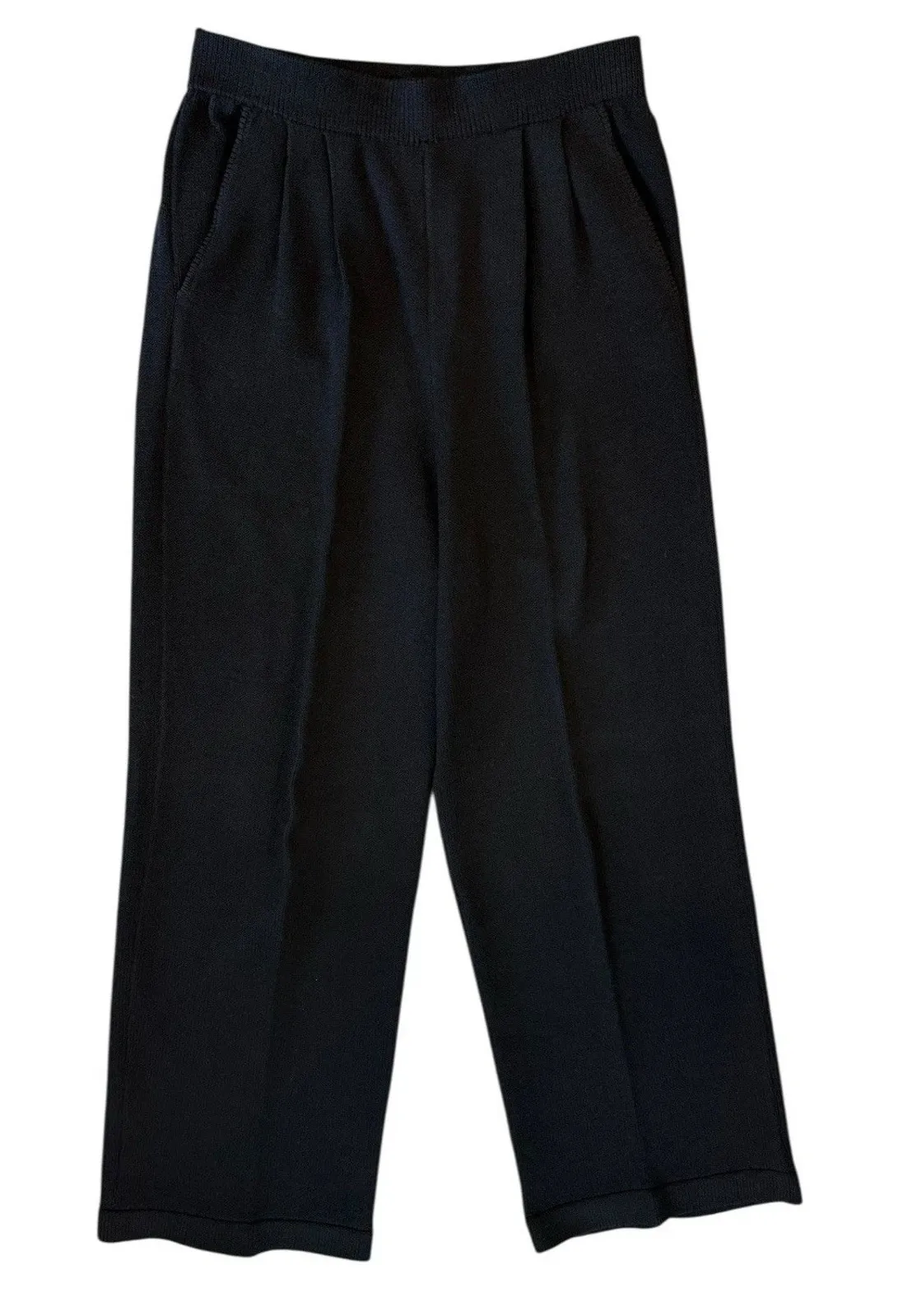St. John Collection Marie Gray Pants Slacks Trousers Women’s 4 Black Pleated Santana Knit Wool Women’s size 4 Black Pleated front Pull on style Elastic waistband Pockets Straight Leg Approximate flat lay measurements Waist 13” unstretched Hips 18” Thigh 11.75” Rise 14” Leg Opening 10” Inseam 27” Excellent condition! Fabric content tag missing