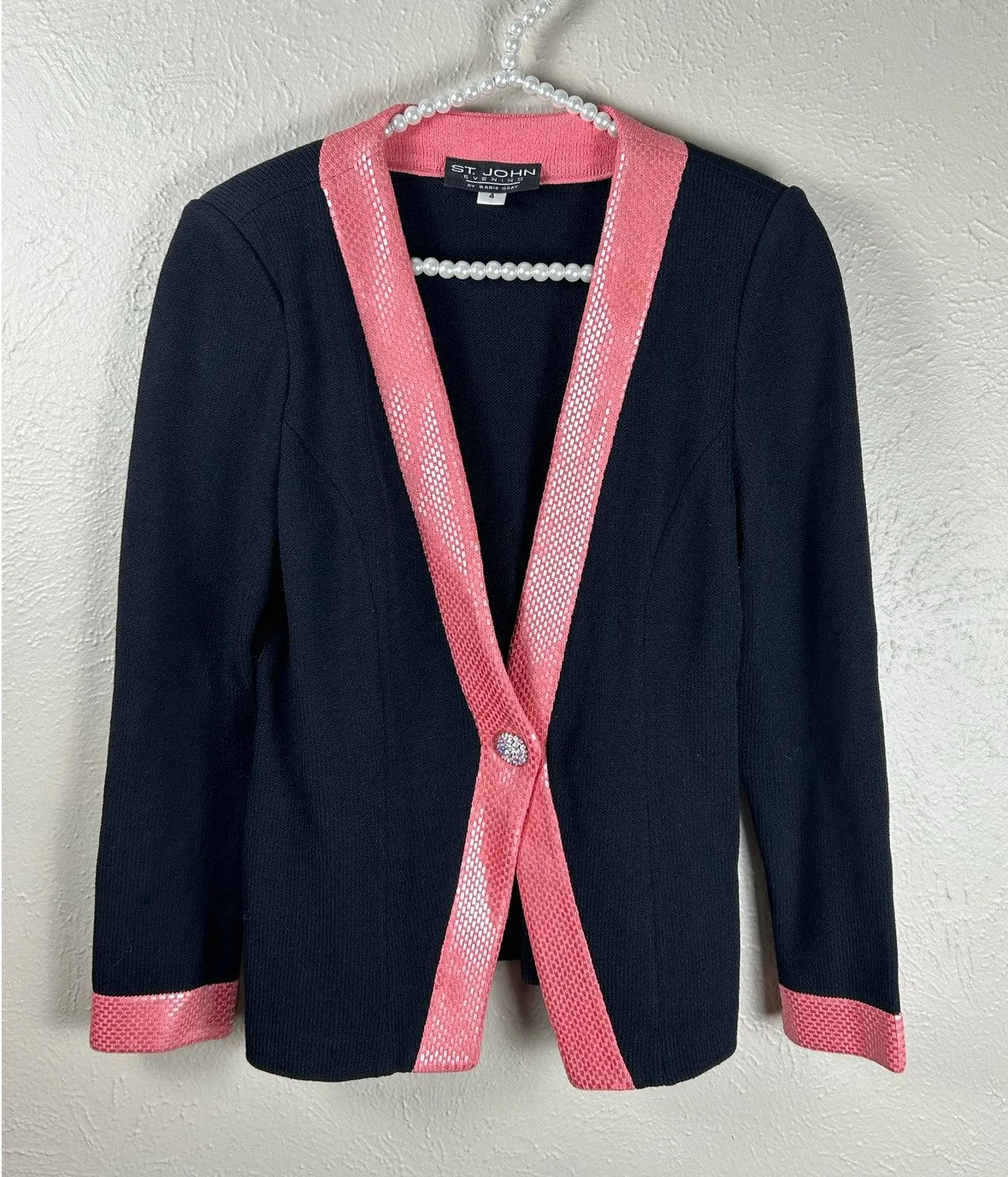 St.John Evening Size 4 Knit Blazer Black Pink Designer Quiet Luxury Cardigan - $175 - From Emily