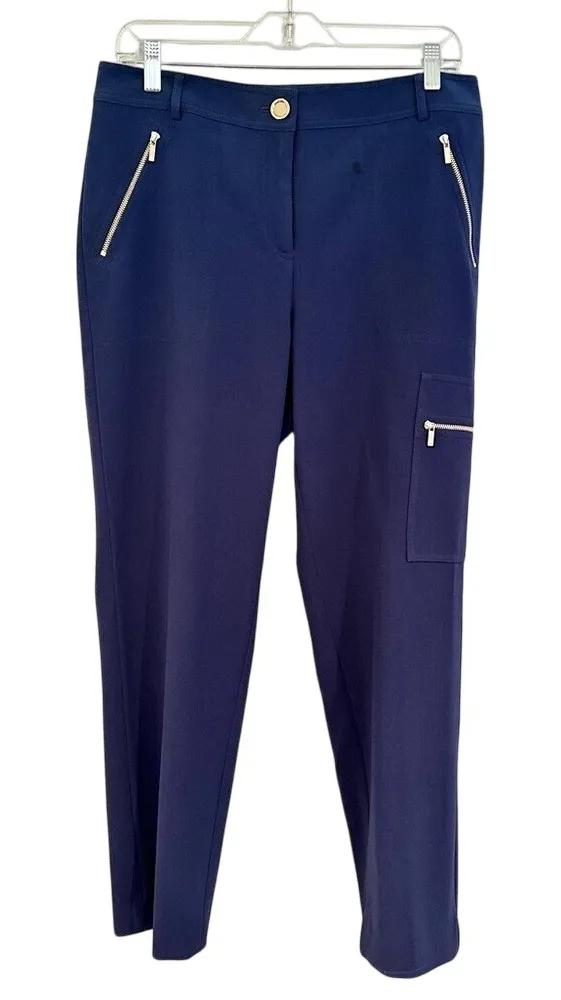 St. John Crepe Sport Zipper Straight Leg Pants Women's 8 Navy Career Casual. Stylish navy blue women... Show more