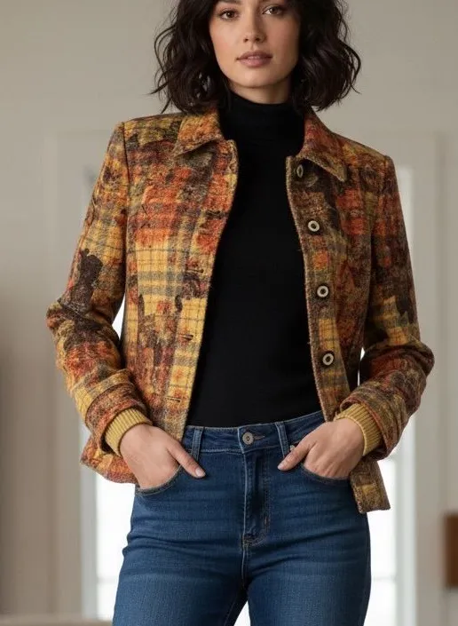 ST. JOHN SPORT by Marie Gray Orange Yellow Floral Plaid Autumn Wool‎ Jacket P Size XS - $200 - From Tiffany