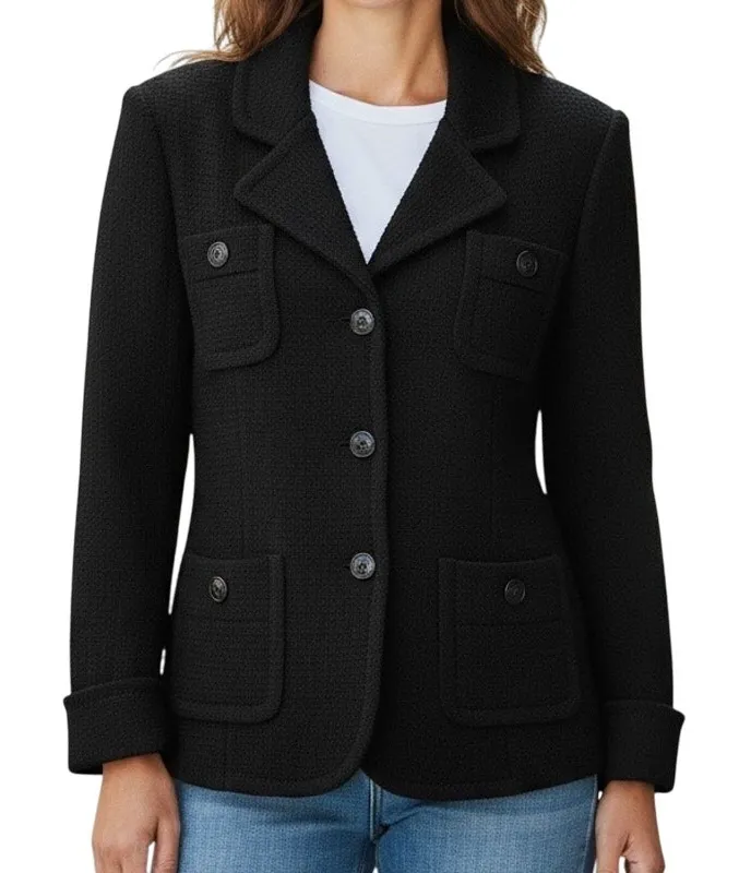 St John Caviar Santana Knit Blazer Jacket Womens Size 6 Black Button Pockets Preppy Old Money Exce... Show more