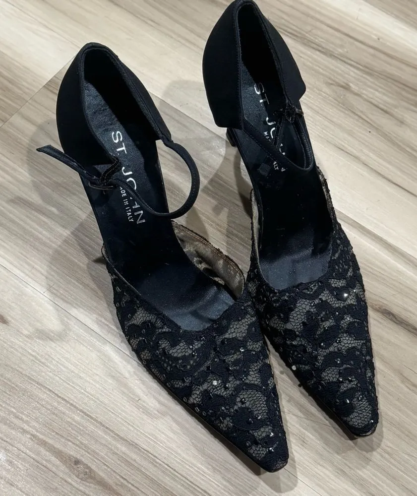 St John Italian Pumps Pointed Toe Kitten Heels Black Lace Sparkle Women’s 8.5 - $48 - From Alyssa