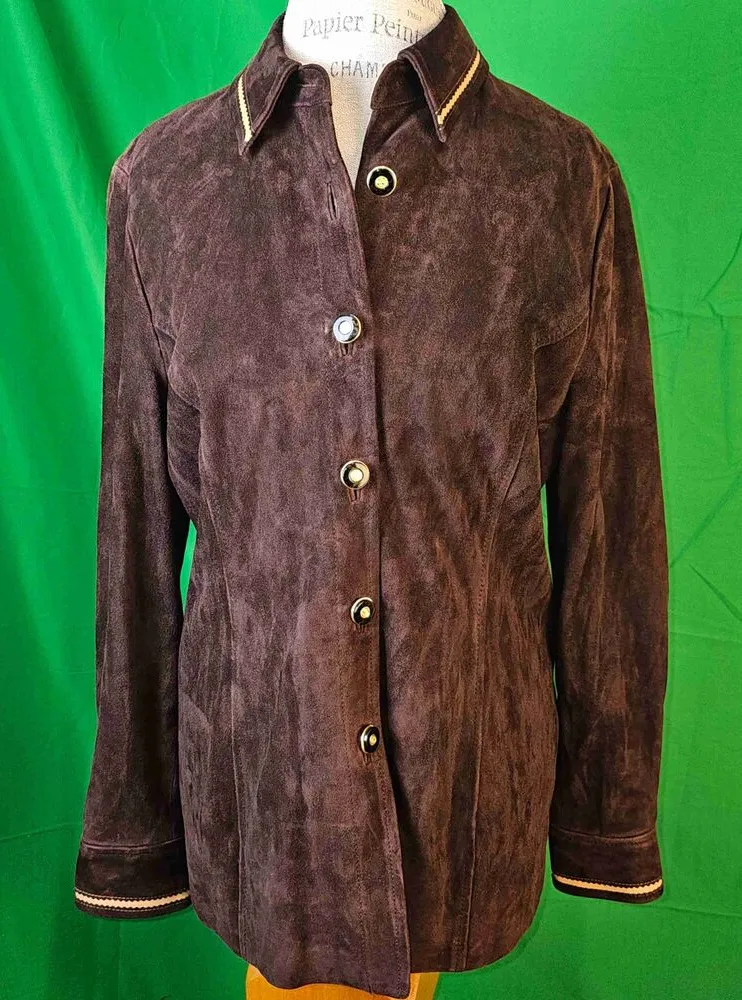 St John Sport Womens Brown Suede Leather Long Sleeve Button Down Shirt Jacket‎ M Size M - $57 - From Pamela