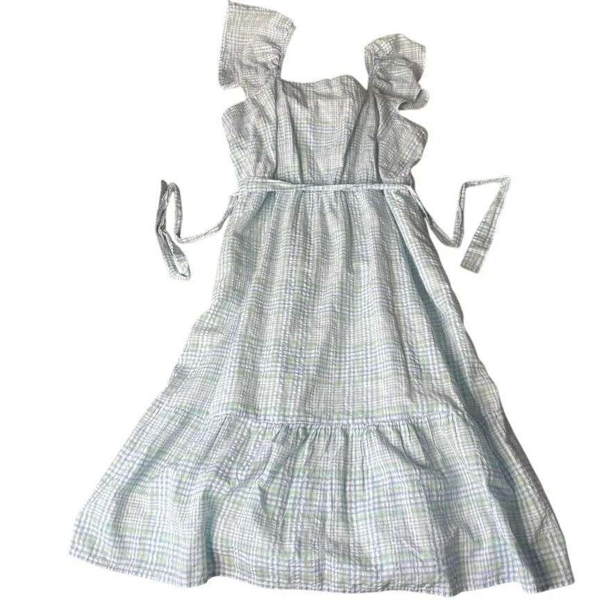 ST JOHNS BAY Blue Green Plaid Extra Large XL Tiered Dress NWT New Tie Waist Midi Length Ruffle flutt... Show more