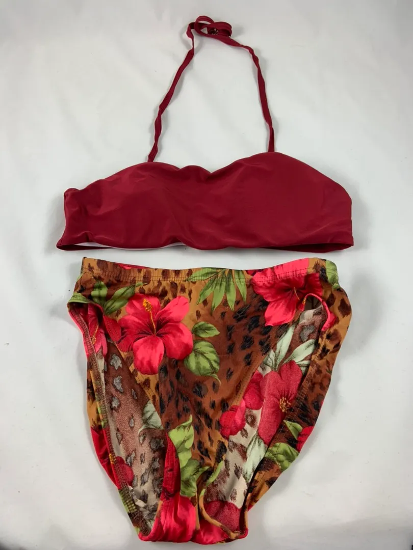 MD Hibiscus red high waist Tankini St Johns Bay brand. Size 10 on tag. Briefs have residue from pas... Show more