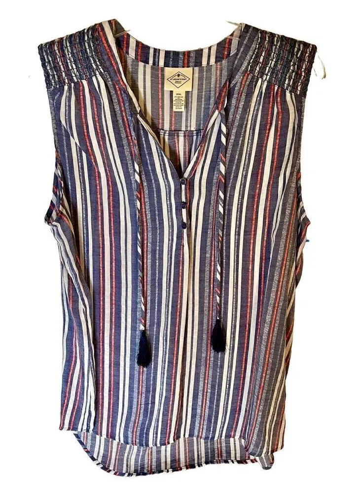 St Johns Bay Medium Womens Sleeveless Blouse Henley Neck Blue Red Top W Ties XXL Worn by an actress... Show more