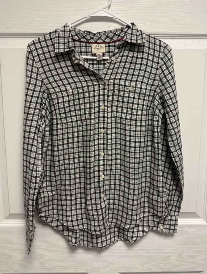 Stylish plaid shirt by St. John's Bay. Features a classic black and cream design. New with out tag