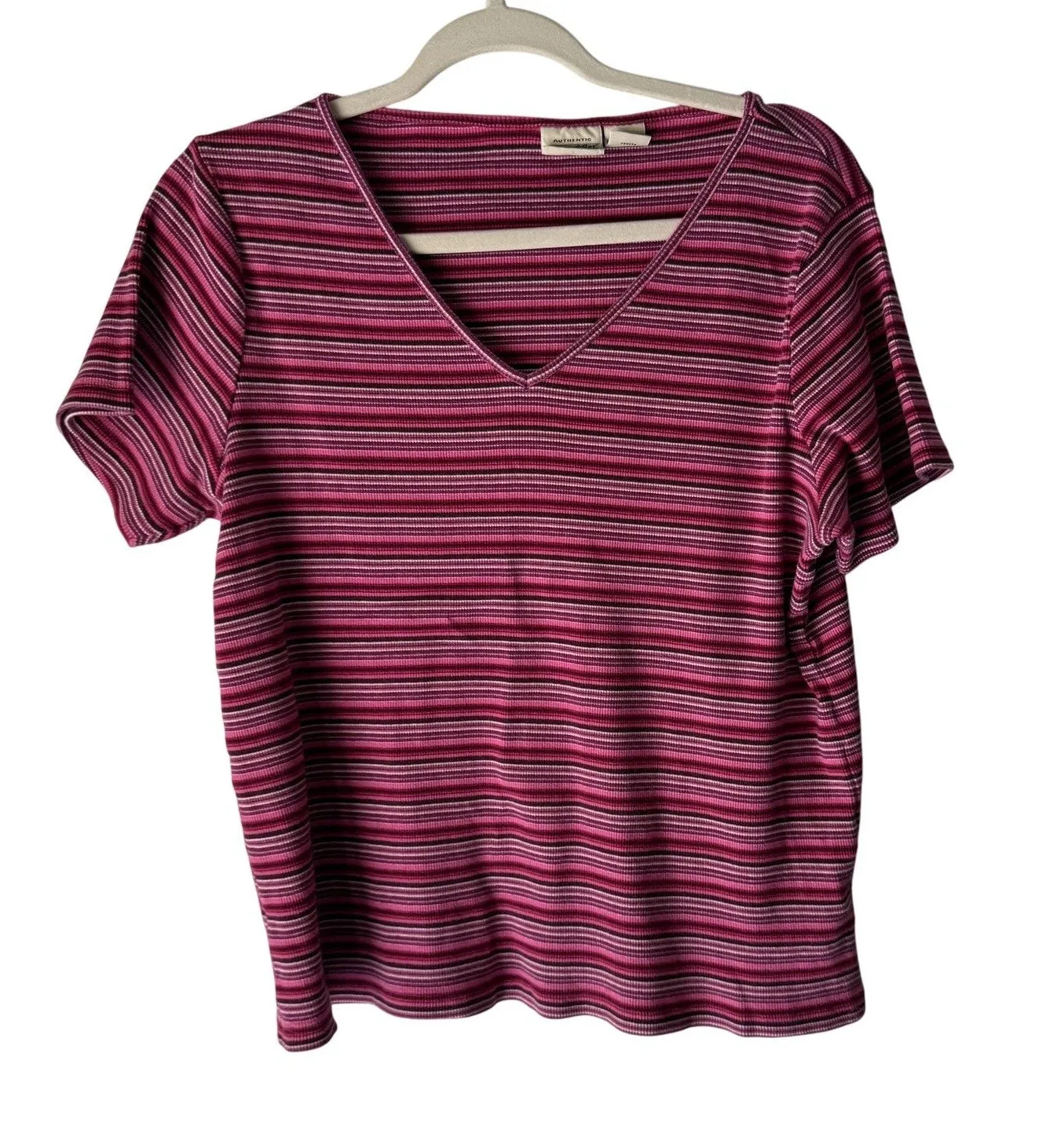 St Johns Bay Shirt Vintage Y2k Extra Large Pink Striped V Neck Short Sleeve Condition: Good used co... Show more