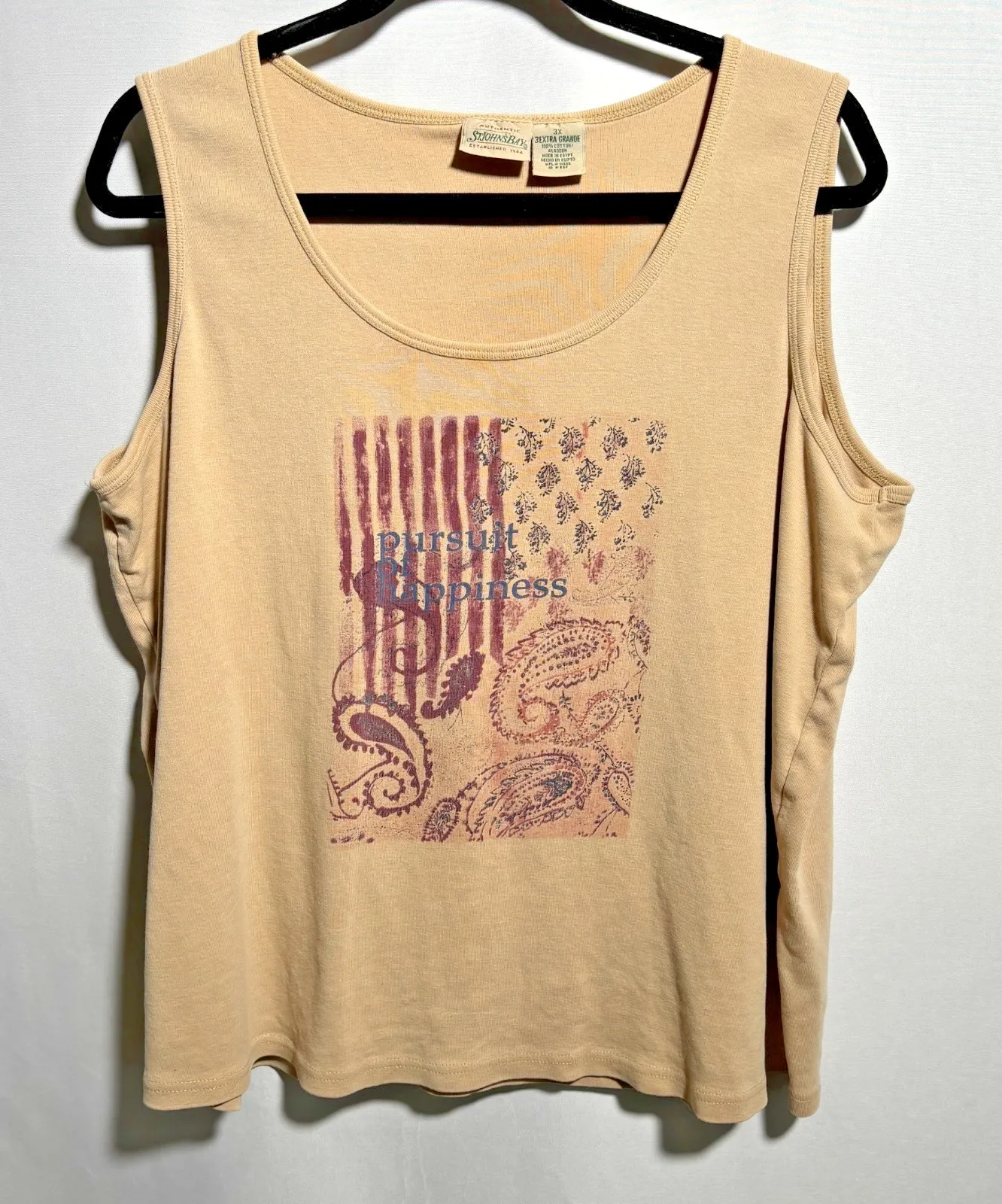 VTG American Flag Paisley Graphic Tank Top Cotton Tan Womens 3X Retro 90s Y2K vintage retro breathab... Show more